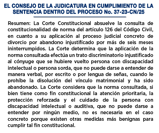 Resumen: La Corte Constitucional declara la vulneración de los derechos a la protección especial como mujer en período de maternidad, a contar con las facilidades necesarias para su recuperación después del embarazo, y a la salud de una jueza a la que se le suspendió su licencia por maternidad tras el fallecimiento de su hijo. La sentencia, en el primer problema jurídico concluye que el Consejo de la Judicatura vulneró el derecho a la protección como mujer en período de maternidad de la accionante por haberla obligado a reintegrarse a funciones mientras se resolvía una consulta sobre la vigencia de su licencia por maternidad; y, por otro lado, en el segundo problema jurídico resuelve que el Consejo de la Judicatura vulneró los derechos a la protección prioritaria como mujer en período de maternidad, a contar con las facilidades necesarias para su recuperación después del embarazo y a la salud de la accionante porque en la resolución de la consulta sobre la vigencia de la licencia por maternidad, la entidad accionada concluyó que tras la muerte del recién nacido el derecho a la licencia por maternidad se extinguiría, desconociendo que dicha licencia tiene –entre varios de sus fines– la recuperación de la madre después del embarazo.