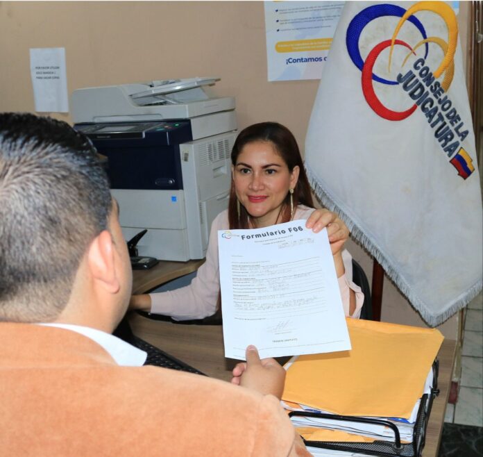Leonor Jiménez Vergara, Directora Provincial, recordó que este servicio está habilitado de manera permanente y que el formulario se descarga de la página web www.funcionjudicial.gob.ec, puede enviarse al correo formulariof06.12@ funcionjudicial.gob.ec o entregarse de forma física.